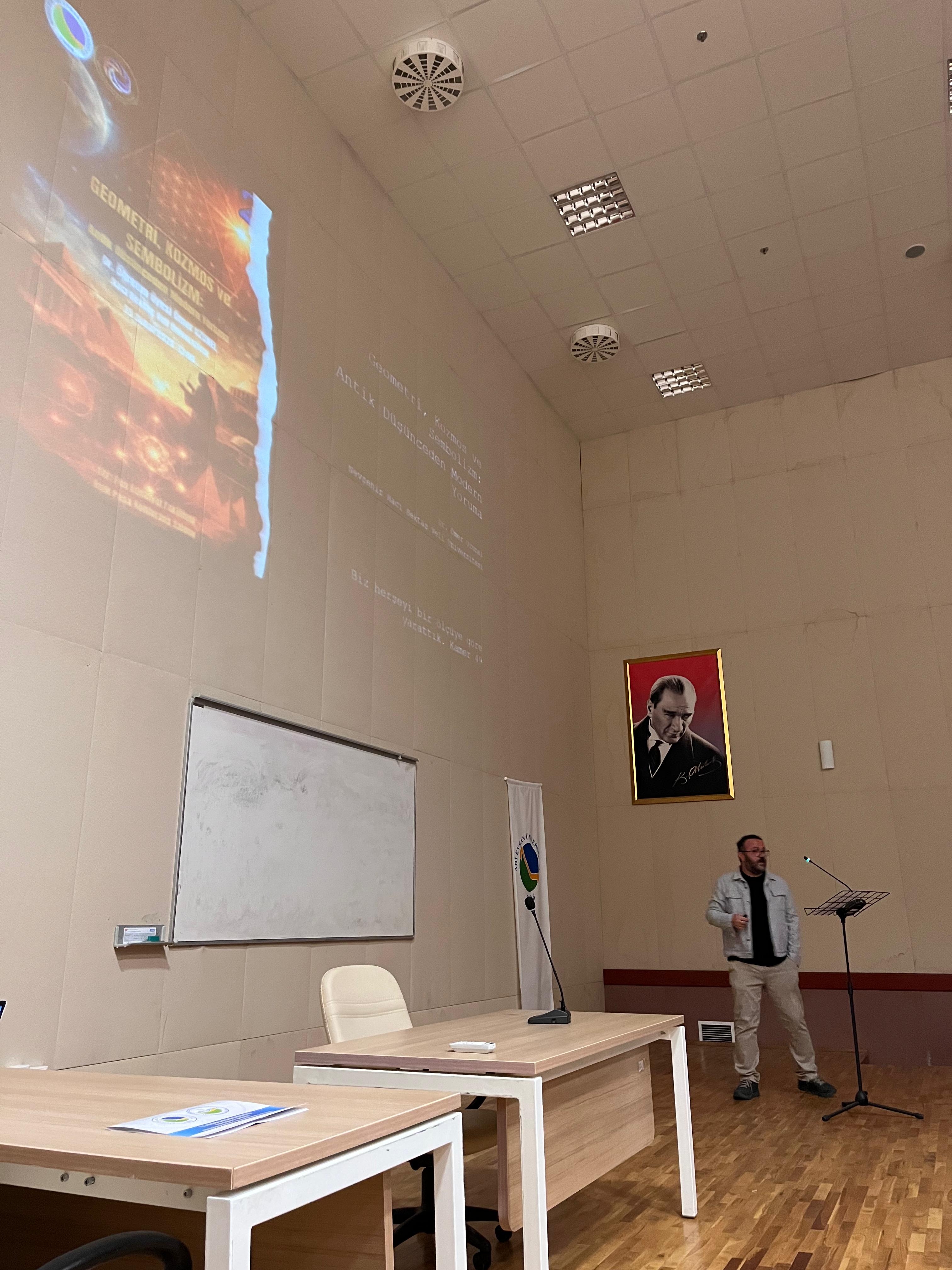 Bölümümüz öğrencilerinin oluşturduğu Ahi Evran Geometrik Tasarım Öğrenci Topluluğu tarafından düzenlenen etkinlikte, Nevşehir Hacı Bektaş Veli Üniversitesi öğretim üyesi Dr. Ömer UZUNEL, “Geometri, Kozmos ve Sembolizm: Antik Düşünceden Modern Yoruma” başlıklı bir konuşma gerçekleştirdi.