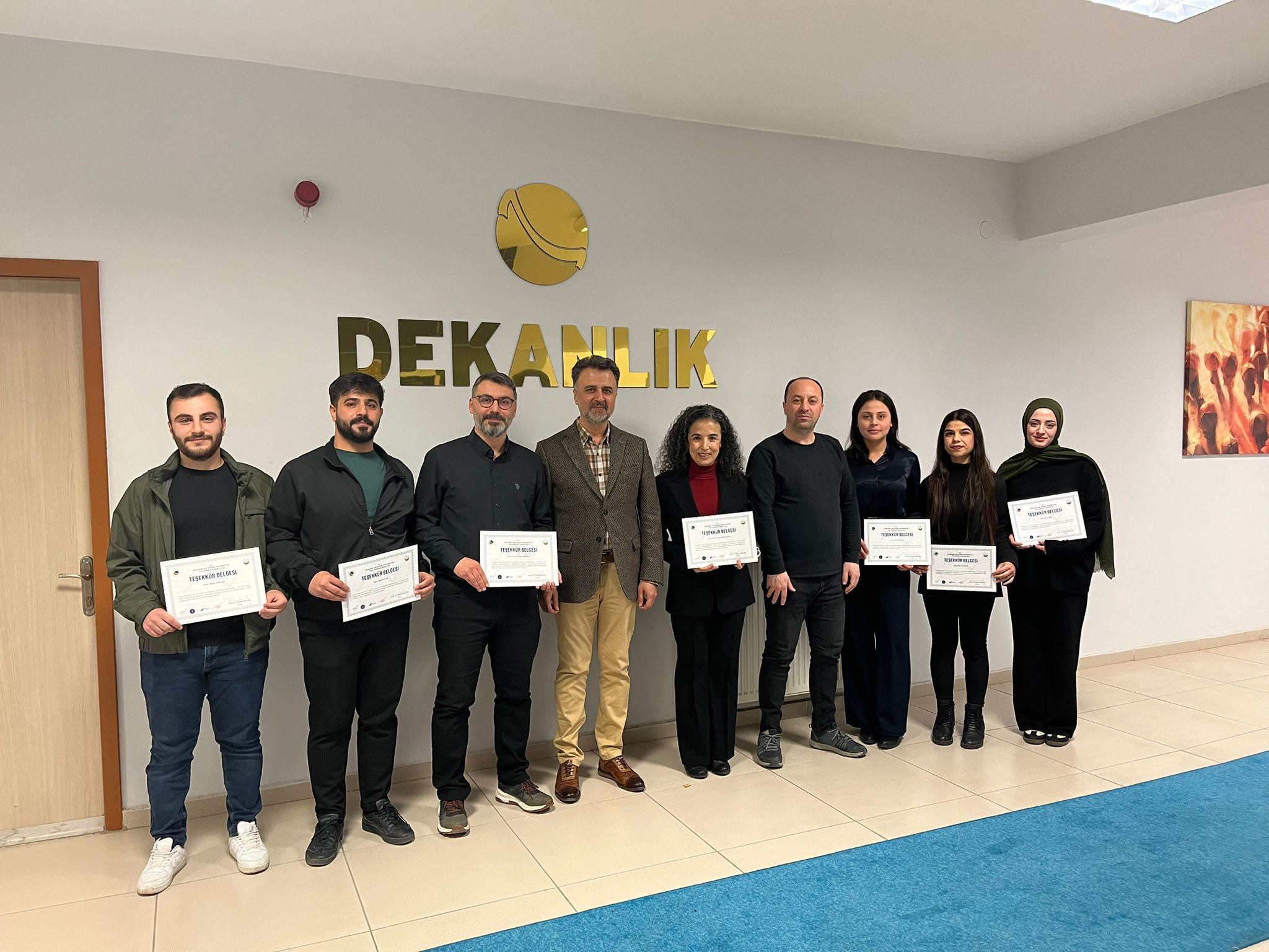 Etkinlik kapsamında, sürece katkı sunan tüm öğrencilerimizi temsilen 5 öğrencimize, ayrıca bölüm başkanımıza ve bölüm başkan yardımcımıza teşekkür belgeleri, Sayın Dekanımız tarafından takdim edilmiştir.