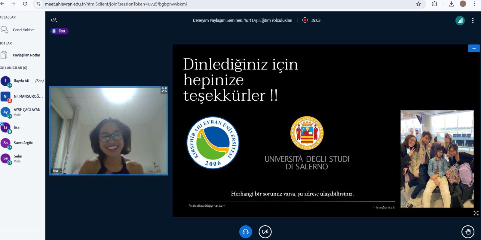 Etkinliğimize değerli katkıları ve paylaşımları için mezunumuz Farah Alissa Mislar'e teşekkür eder, akademik çalışmalarında başarılarının devamını dileriz.